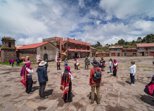 After a delicious breakfast with your host family, you will be brought to the local harbour. From here, we will take a short boat ride to the shores of Taquile Island, where we will start to hike to the main square, observing the local people, who are world famous for their intricate and fascinating weavings and community work. Amongst men, it is very easy to identify who is married, single or dating a female – just by the colours of their hat! Also, you will get to know who is important on the island just by the way of what items they wear. You will have lunch in one of the community restaurants and then descend to the local port to return to Puno. Arriving in Puno from 03:00 to 04:00 pm, we will finally transfer you to your hotel.